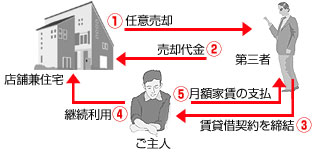 この場合は、店舗兼住宅をリースバック契約を前提に第三者に売却すれば、毎月賃料を第三者に払うことで住み続けることができます。賃料は、これまでの住宅ローンより負担のない額を設定し、新たな所有者と不動産の賃貸借契約を締結。毎月賃料を払うことでこれまでと同じ生活がおくられます。